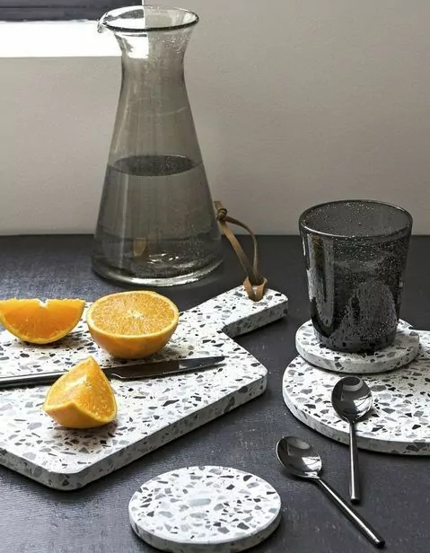Bénéficiant de qualités de résistance, le Terrazzo peut également être utilisé comme accessoire de découpe dans les cuisines comme des planches à découper ou bien en étagères murales comme élément de décoration.